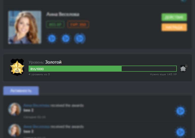 Система начисления баллов за активность и выполнение заданий. Продвижение на более высокие уровни для мотивации пользователей.