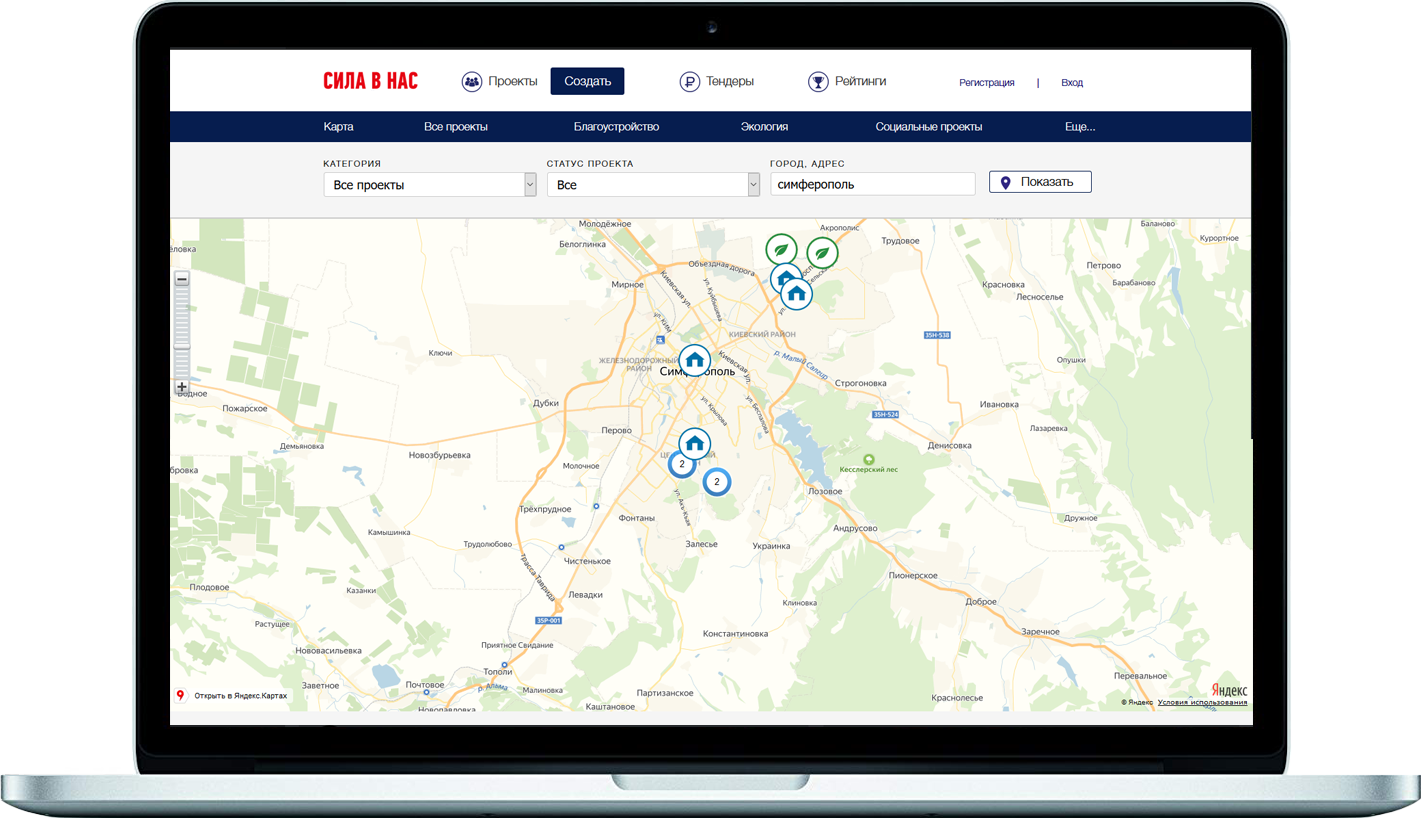 Проект "Сила в нас" - это краудфандинговая тендерная интернет-платформа для объединения населения и бизнеса с целью реализации проектов по благоустройству, решения социальных, экологических и других общественно-важных проблем.